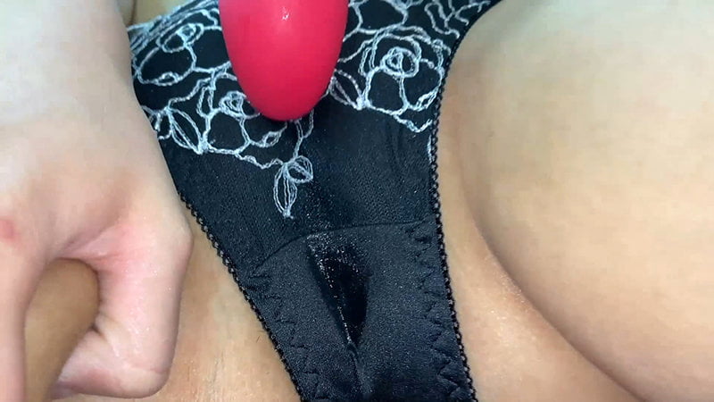 そのバイブでパンツの上からクリを攻めると程なくパンツにシミが浮き出てくる。この透明なシミは明らかに本気のマン汁。
